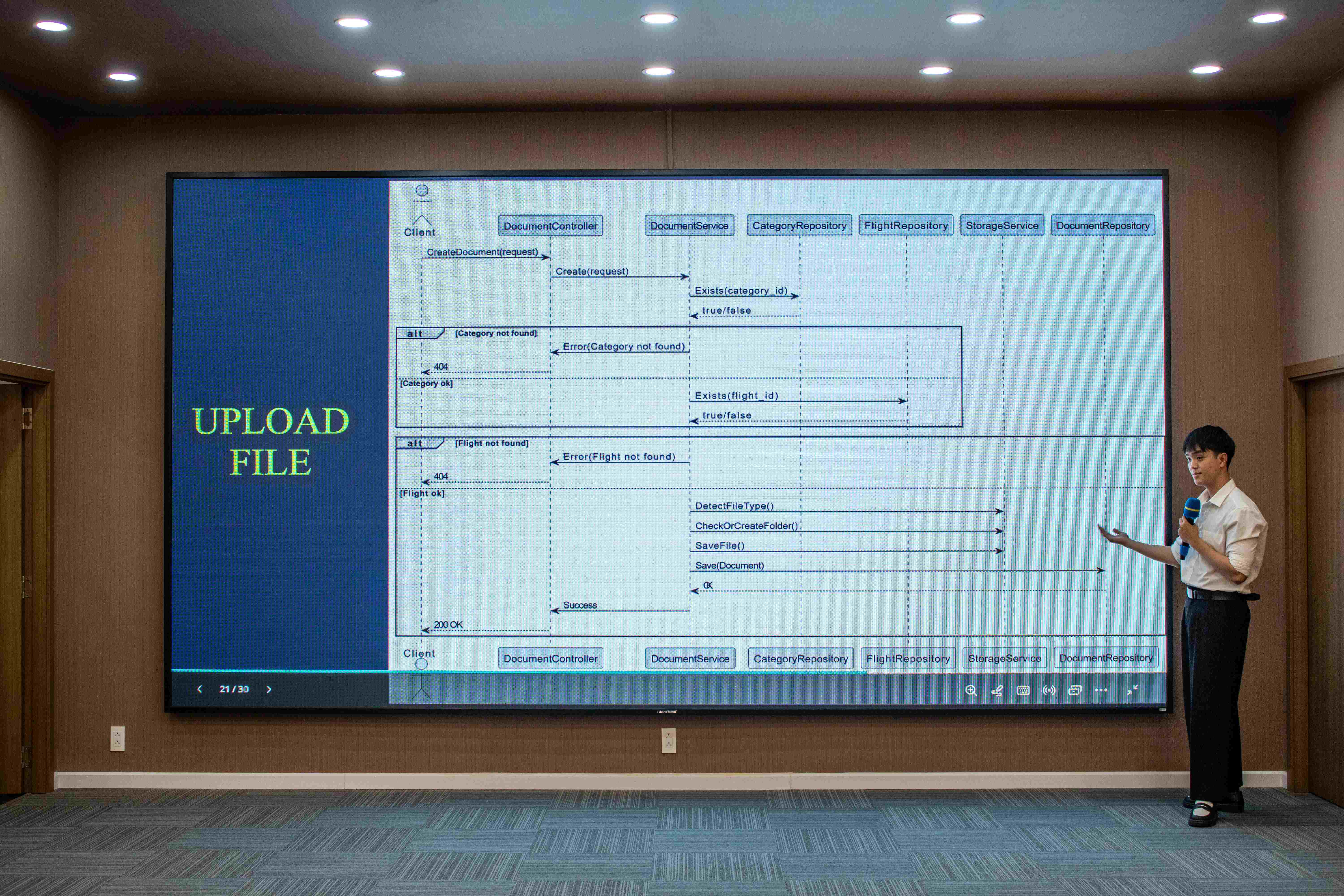 Trainee teams preparing content and presenting their projects at the enterprise semester defense.