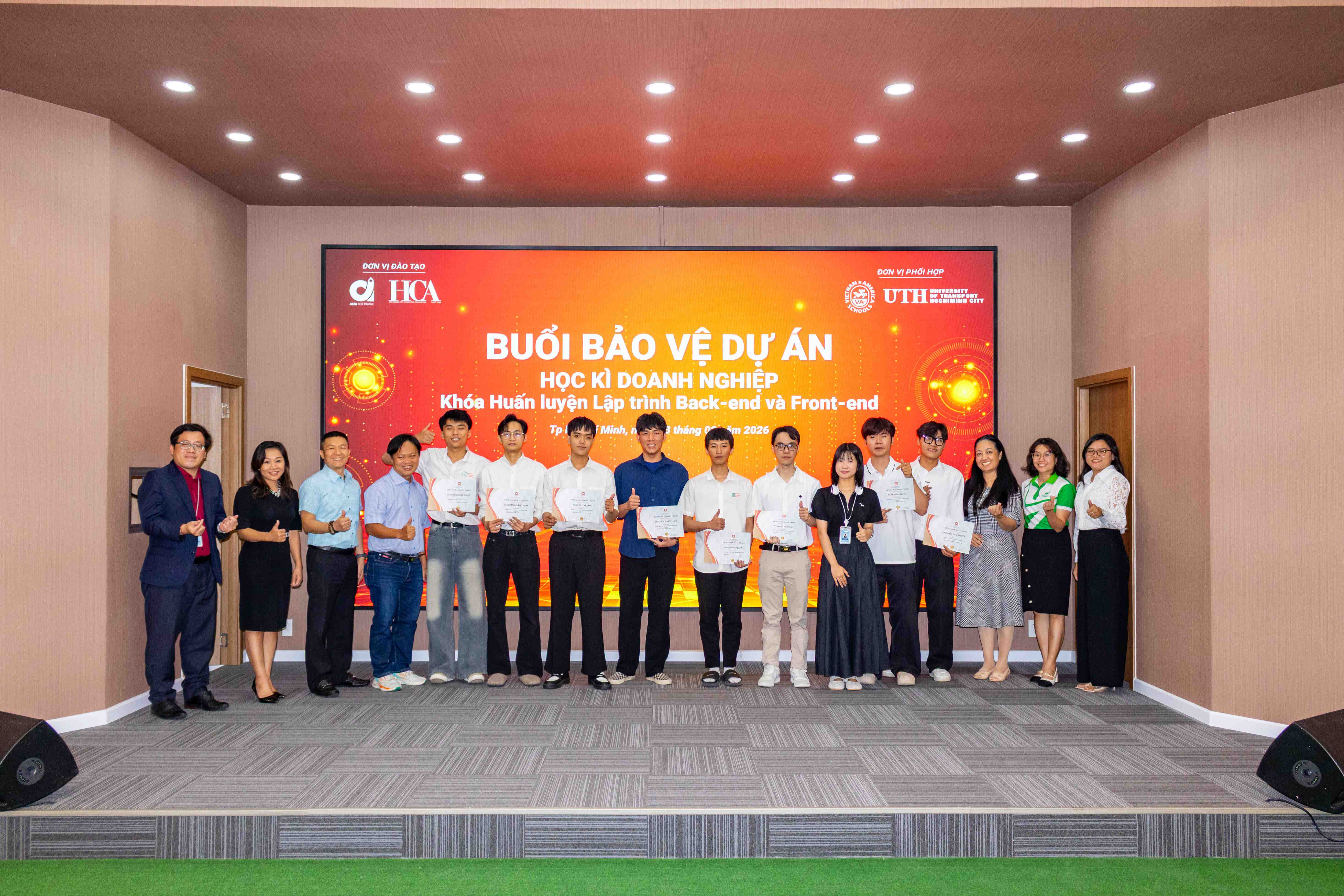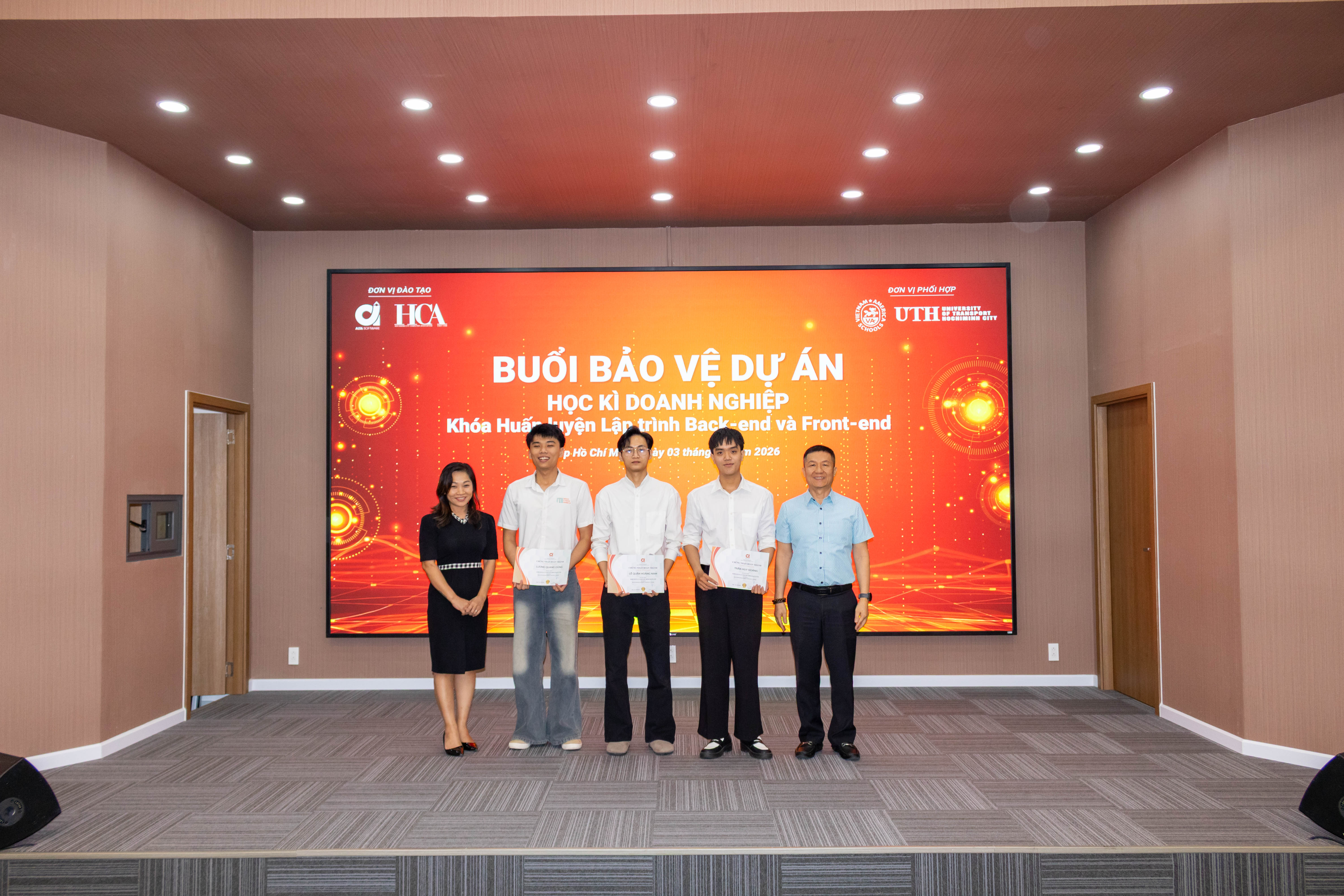 On February 3, Alta Software partnered with HCA to organize the enterprise semester project defense for the Back-end and Front-end programming training courses. The activity is part of an Information Technology training program closely aligned with real-world business practice, designed to comprehensively assess learners’ academic progress, skill development, and ability to apply knowledge after completing the course.